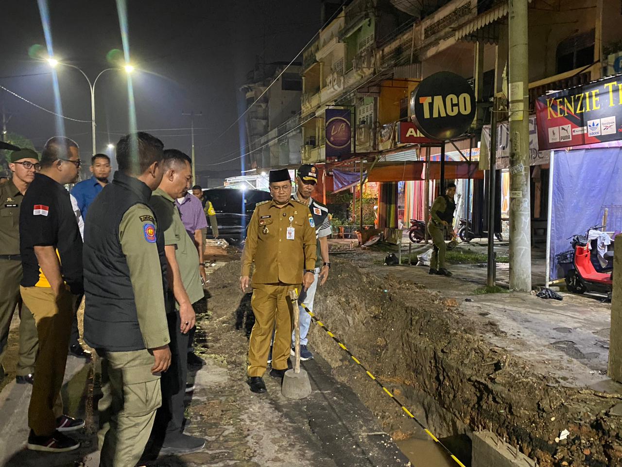 TryMediaDigital.com, Kota Jambi – Wali Kota Jambi, Dr. dr. H. Maulana, MKM, melakukan inspeksi mendadak (sidak) malam hari, (6/10/25) untuk meninjau langsung progres pembangunan drainase di kawasan Pasar Talang Banjar. Proyek ini merupakan bagian dari program penataan kawasan strategis kota yang tengah digalakkan Pemerintah Kota Jambi.